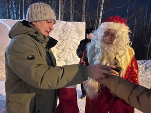 Завели свой бардовский хоровод под песню «И снова что-то нас зовет», подключили к нему всех желающих, поздравились с Новым годом. Были традиционные мандарины от Президента клуба, но впервые были вручены конфеты и от вице-президента (новая традиция!). А потом уже пошли в ледовый городок, где повстречались с главным Дедом Морозом наукограда – мэром Николаем Григорьевичем Красниковым (вот кто по-честному отдедморозил все года существования Кольцово).